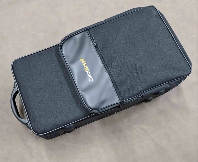 This Double Trumpet Case from CarolBrass would be a superb choice for any on the go Musician thanks to its many excellent features. Backpack straps on the back of the case and the two handles make carrying the case extremely easy, whilst the two moveable blocks inside the case ensure that it can be configured to safely carry two trumpets of your choosing. The case also features a large front pocket for accessories and music, along with 4 mouthpiece holders inside the case.