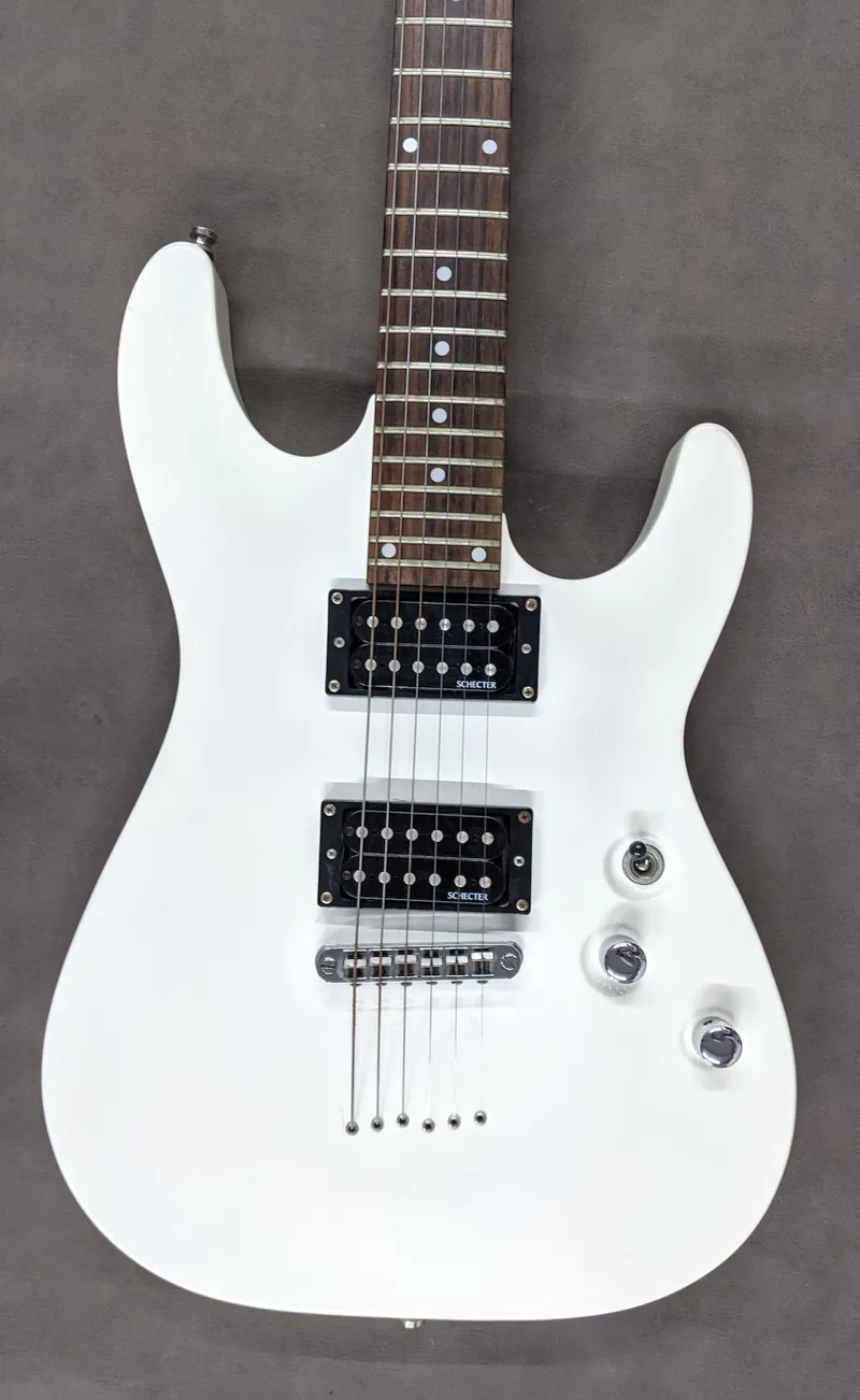 This Schecter Black Hawk BC-1 Electric Guitar in a White Gloss finish would be a an excellent choice for any beginner looking for a solid and reliable guitar to get started on, or for a more experienced player looking to add to their collection. The two humbucker pickups with 3 way pickup selector and both tone and volume control, you can be sure that this guitar will give you the flexibility of tone you need. This guitar also features a 24 fret fingerboard and a cutaway design, giving you full and easy access to all these frets.