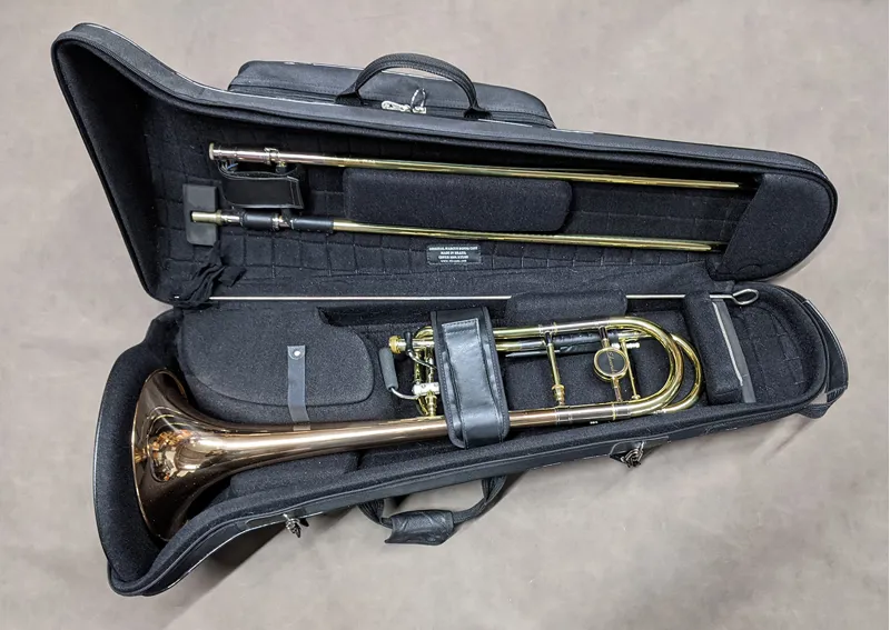 This Trombone has been customised by its previous owner, including an Edwards balancer weight.