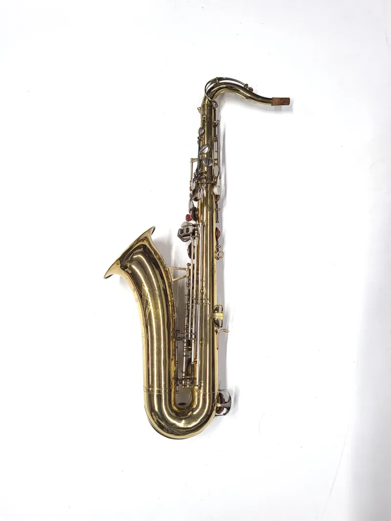 This saxophone is in good condition for its age, with minor damage to the lacquer across the instrument, as is standard for its age.