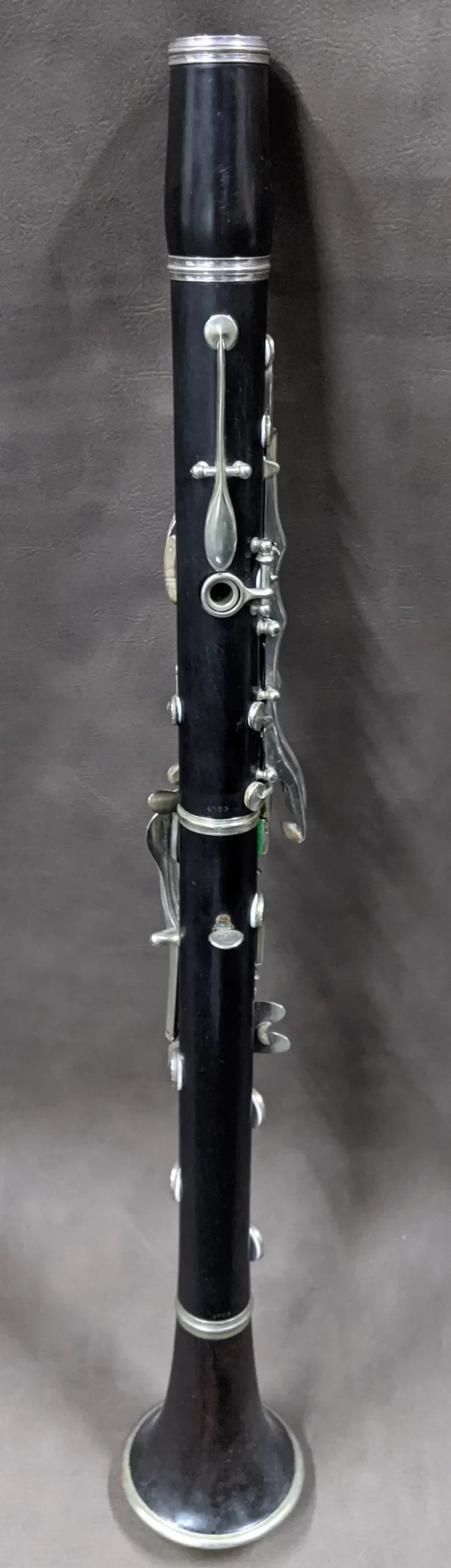 This clarinet is in surprisingly good condition considering the instruments age. The silver of the keys is largely intact and the main wooden body has just a few scratches.
