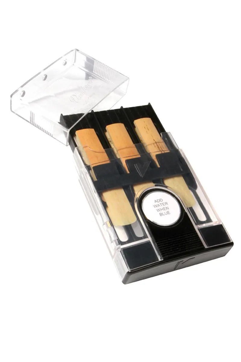 Keep your reeds in a humidity controlled environment. This Hygro Case holds 6 of any bass clarinet / tenor sax or baritone sax reeds. It offers regulated humidification by air circulation and a hygrometry level controlled by a humidity indicator disc.